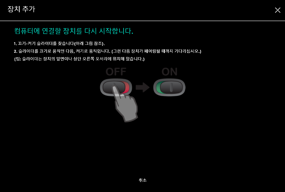 4. 아래 이미지의 설명대로 마우스의 전원을 껐다가 다시 켭니다.