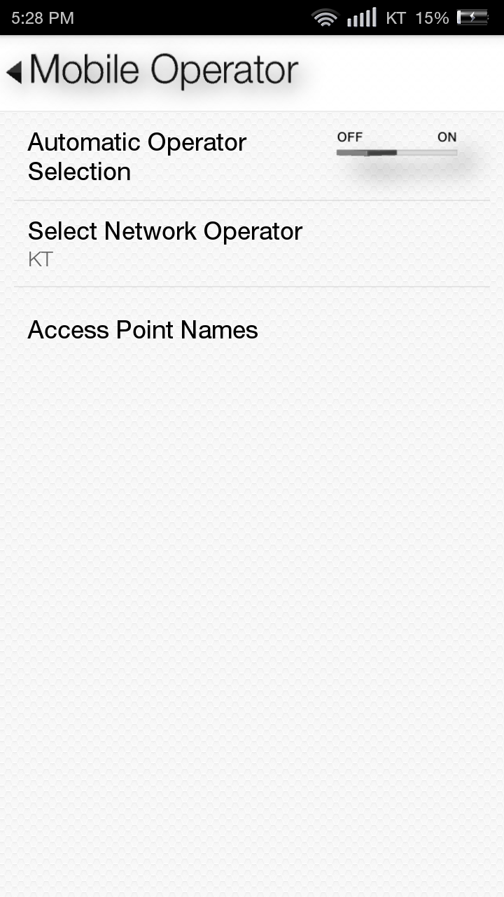 Select Network Operator를 KT로 설정